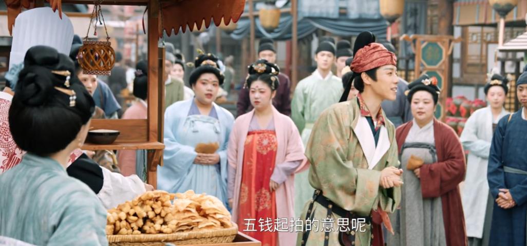 剧组以《清明上河图》为蓝本复原的永安东市,青石板路的纹路、酒肆幌子的材质、胡商摊位的陈设,都力求还原中晚唐市井生态。
