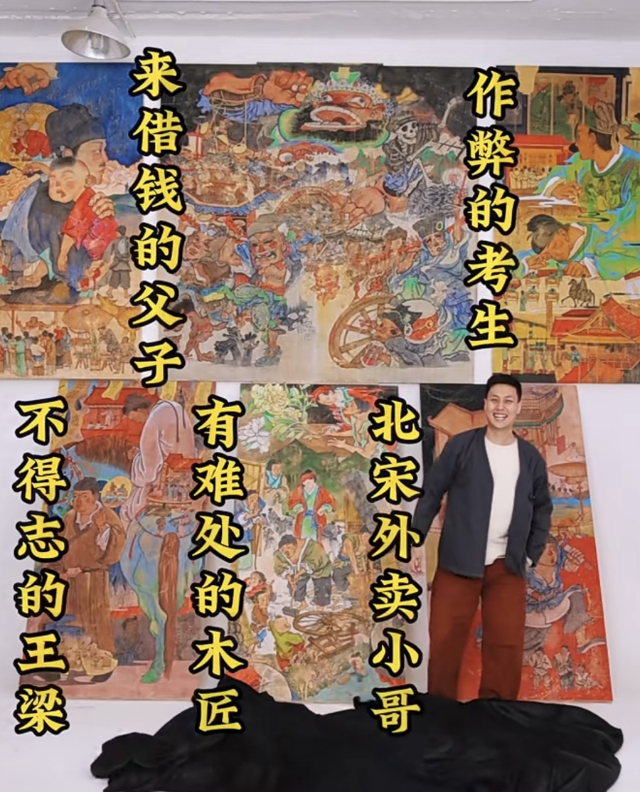 艺术区目前还寂寂无闻,但并不影响陈汉煜成为“网红”。他就是那个为《清明上河图》中超过1600个小人物创作画作并取名字、讲故事的艺术博主。