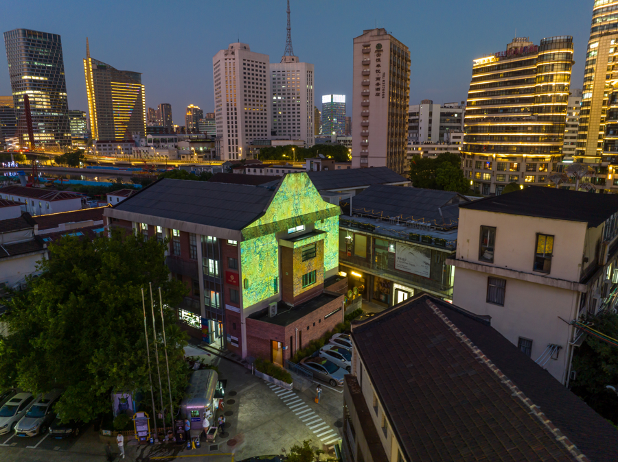 入夜的M50园区,工作室里依然有人在工作