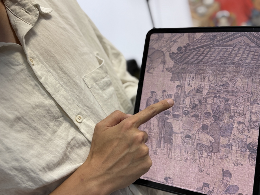 陈汉煜把《清明上河图》放大,仔细研究每个人物的表情和姿势。栾吟之 摄